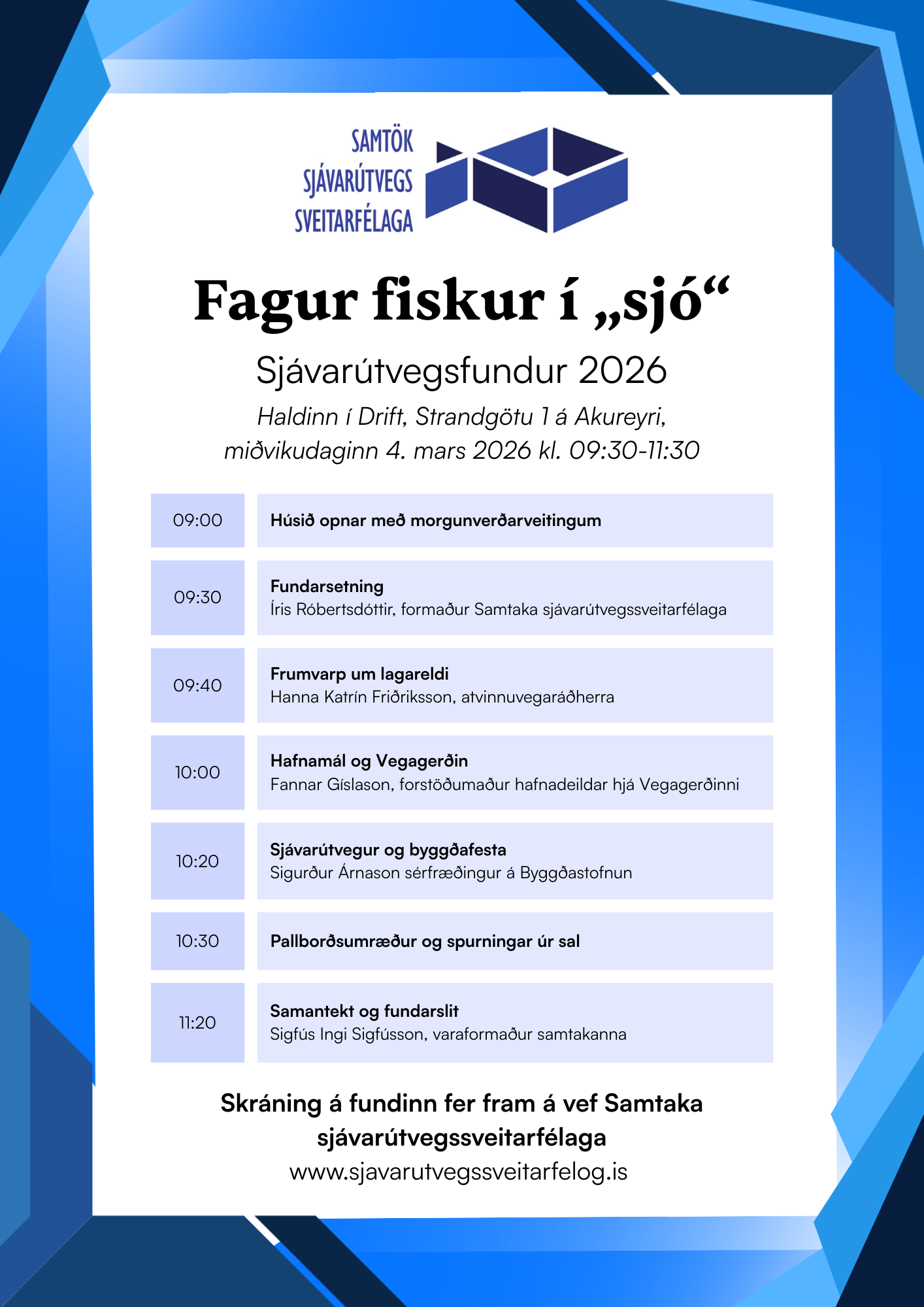 10:00 Hafnamál og Vegagerðin, Fannar Gíslason, forstöðumaður hafnadeildar hjá Vegagerðinni